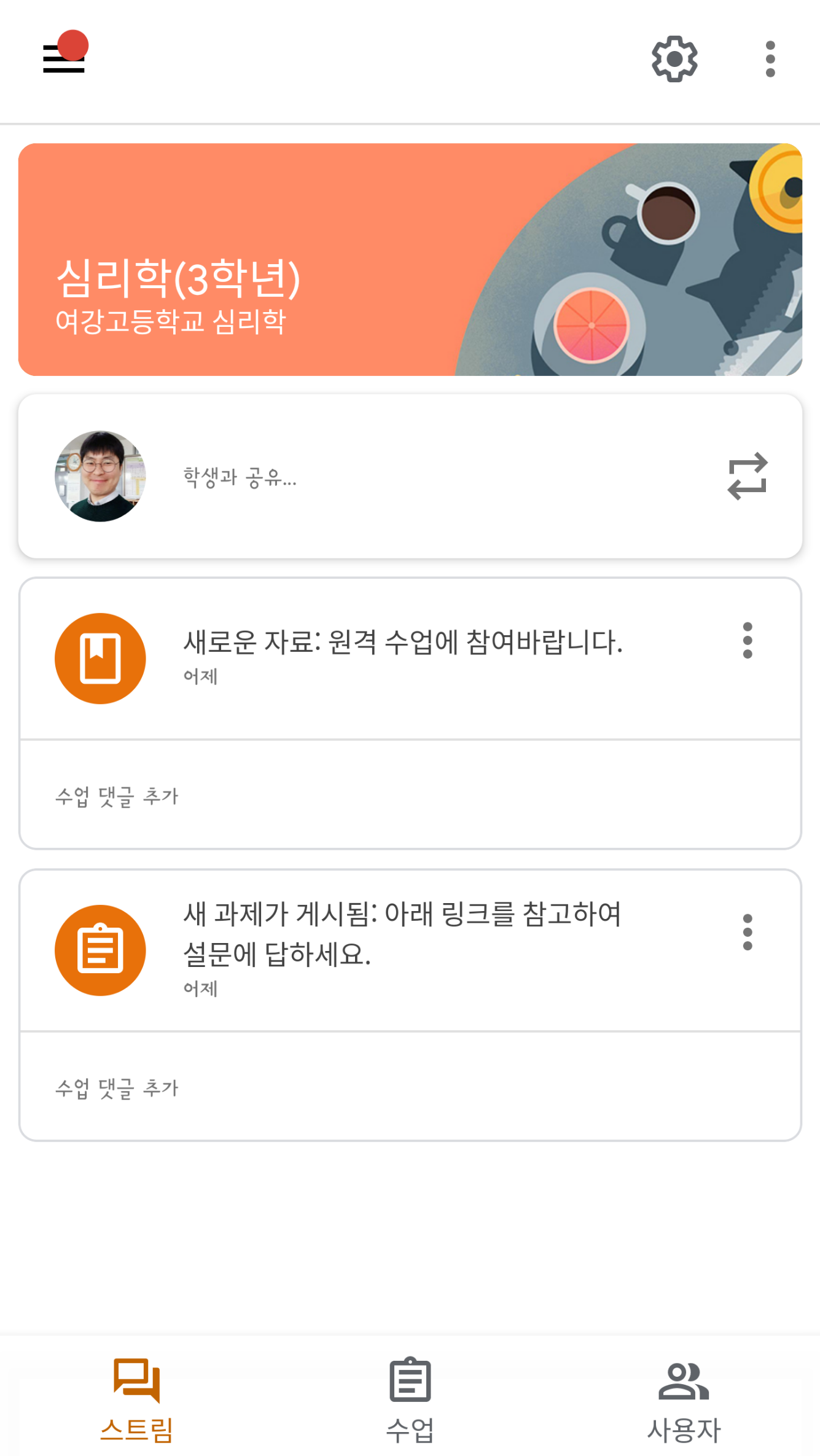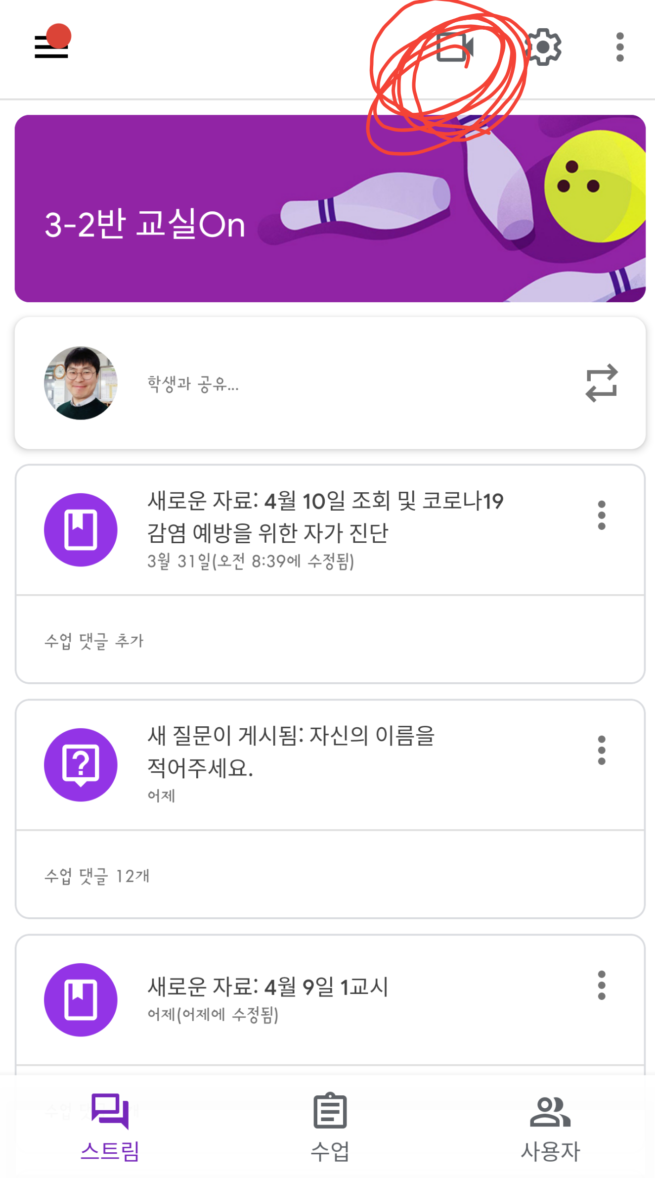 하지만 새로운 기능으로 인해 클래스룸 기본 정보란에 공유가 되며 어플에서는 아이콘이 생성된다.